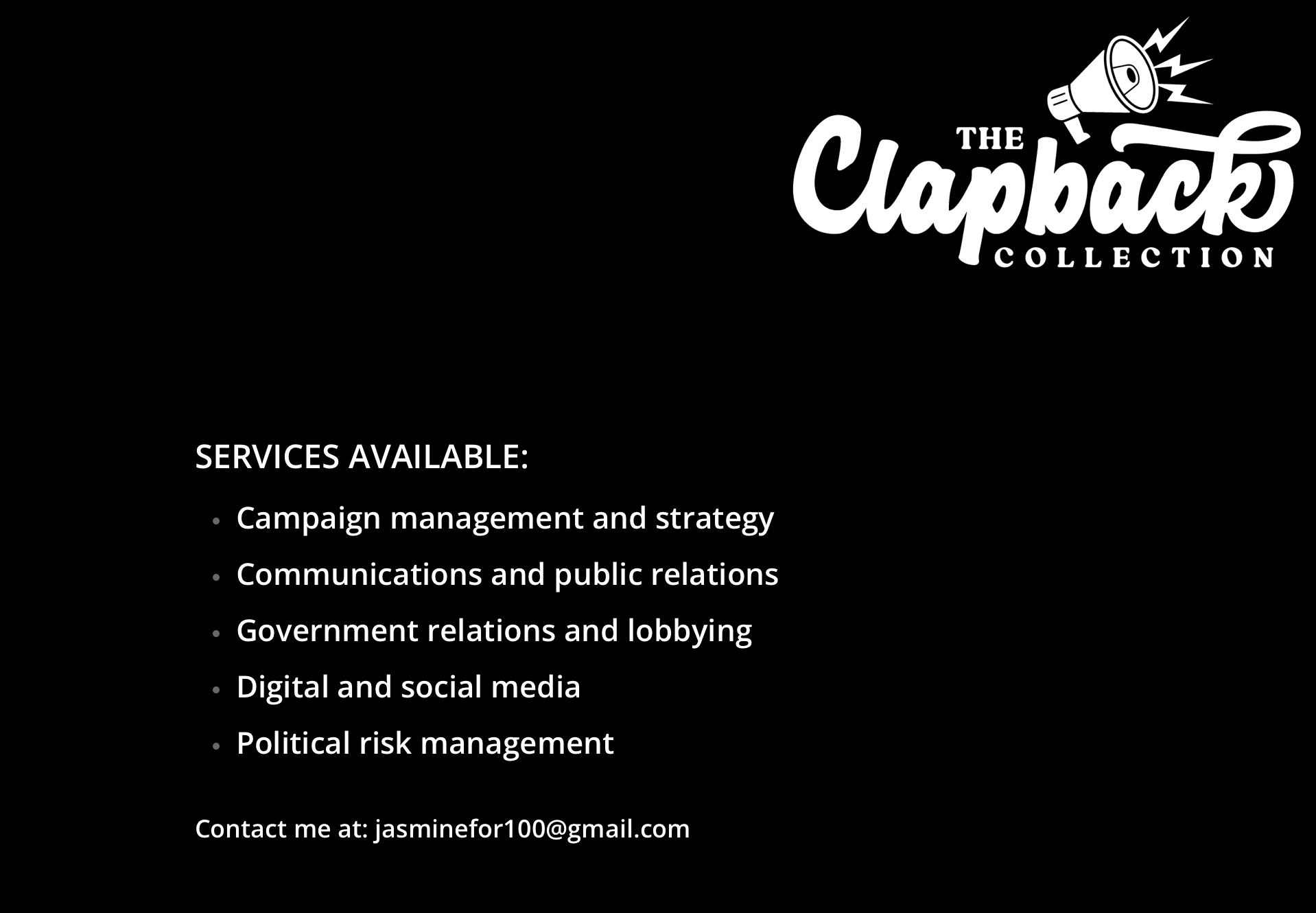 But at the very bottom of the page, above the pay-for box for “Jasmine for Us,” there’s a button reading “Political Consultant-Book Now.”