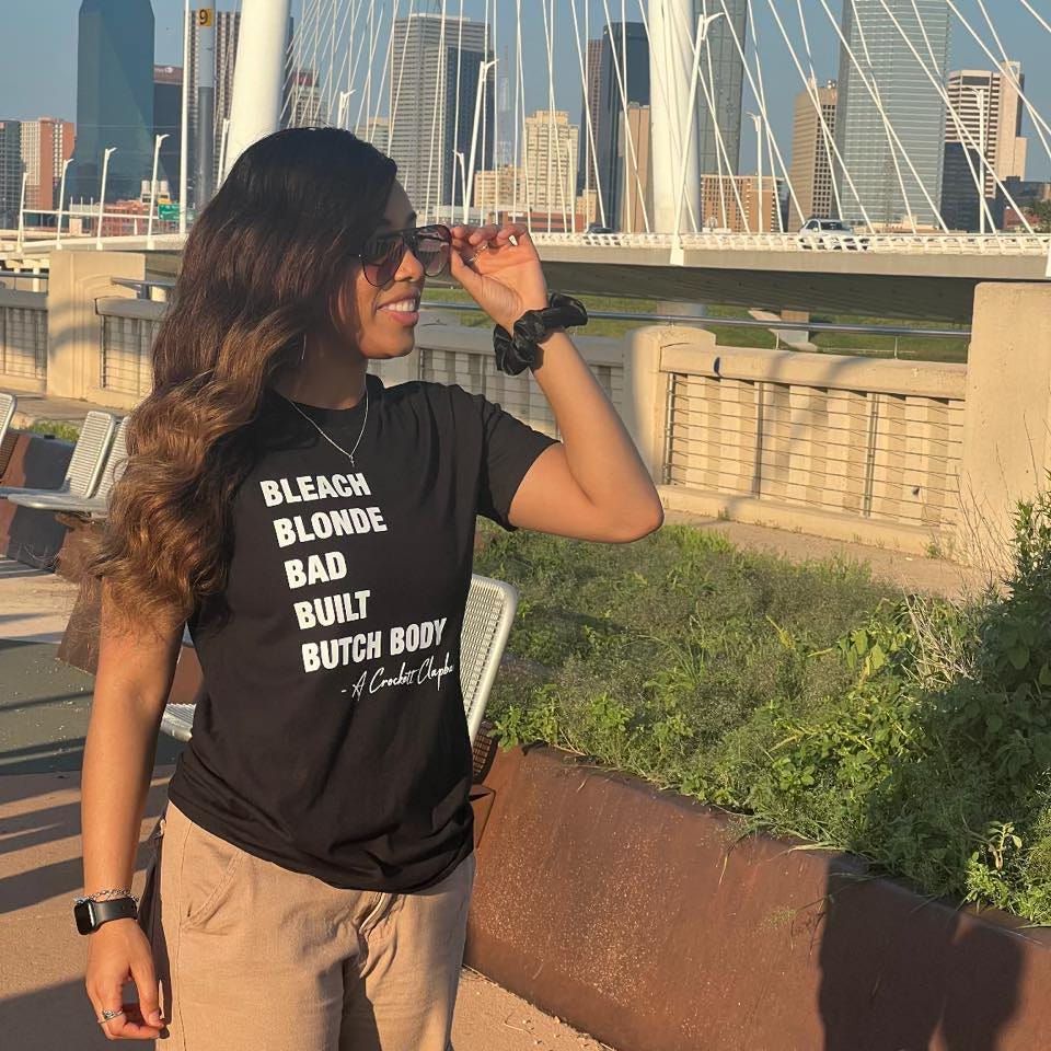 This is something so strange I wasn’t sure where to put it, so I’m dropping it at the end. That very first Facebook ad of the Blue Chip era I mentioned to link to a shopify store called the TheClapbackCollection. Here you can make an actblue donation in return for items like a “Bleach Blonde Bad Built Butch Body” shirt, a “Chile” hoodie or Jasmine Crockett is “My Type” paraphernalia. You can see Crockett herself modeling The leading image for this piece is a screengrab from a video modeling the shirt.